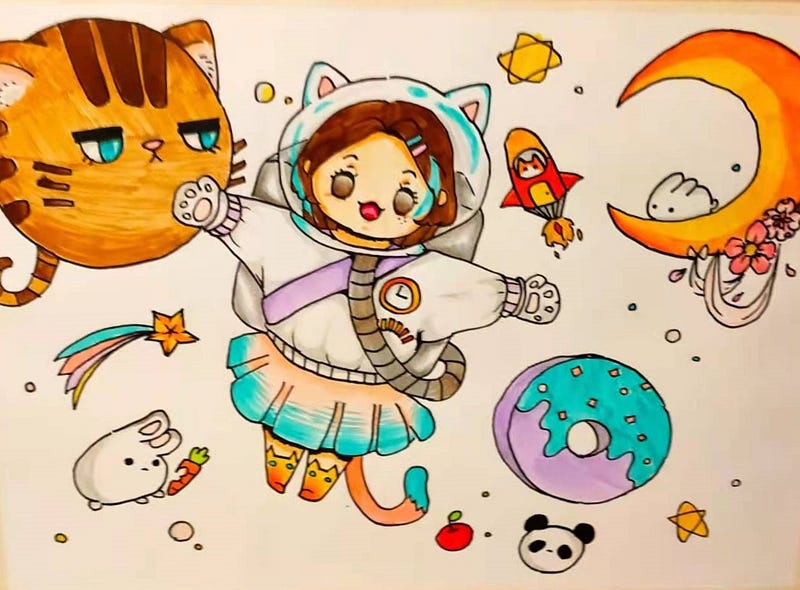 - 小果很愛畫圖,我自己的經驗,同學中畫得好的多半是自己愛畫圖,科班出身的孩子畫成公式以後,那些技法很難丟掉,反而限制住自己,所以我從來沒有讓她上過一天的美術才藝班。