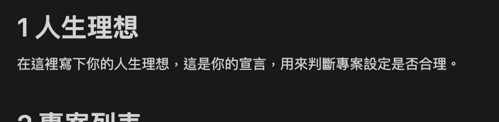 - 我在做每個專案時,要問「這個專案能幫助我達到人生理想嗎?」