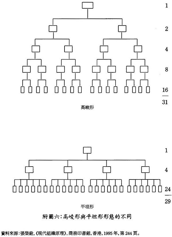 - 在這個「科層組織」裡,只有最底下那 128 位員工在工作,上面 127 名主管每天主要工作是開會,而有這麼多會議是因為主管太多想法分歧要好好讓對方陣營聽我的。