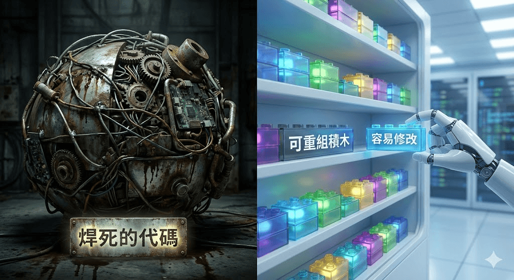 當你對著 AI 說「幫我做一個客戶管理系統」時,AI 的天性是**「優先讓程式跑起來」,而非「考慮未來好不好改」**。