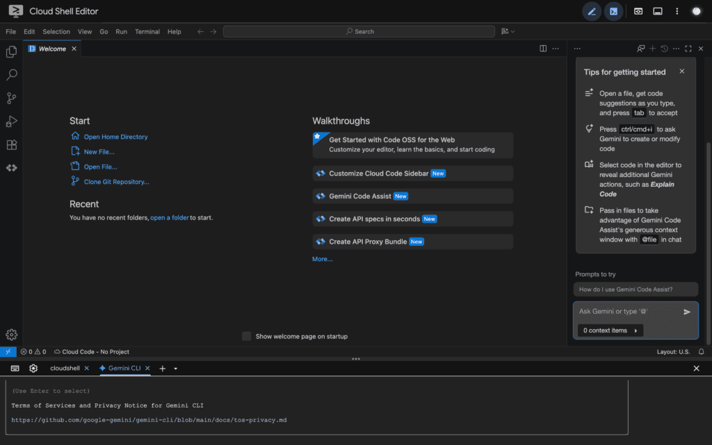• A | 在雲端終端機中,啟動 Gemini 助理: